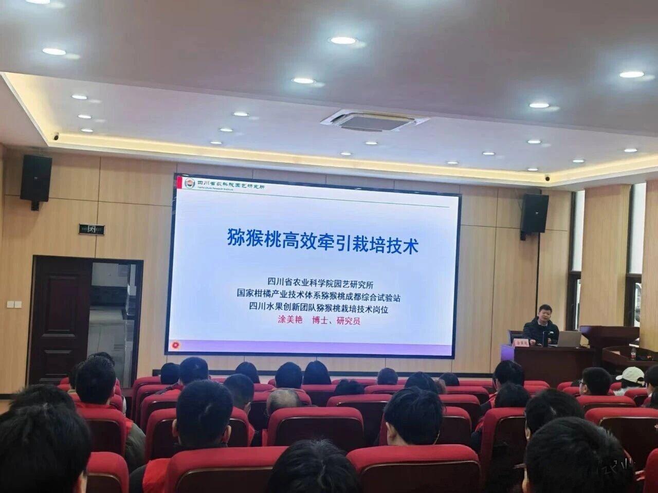 本次培训聚焦伞形整形、屋脊式牵引等先进树形培养技术,旨在为核心示范区60亩高标准果园的建设夯实技术基础,目标实现“省工30%、增产50%”的生产效益突破。四川省农业科学院涂美艳研究员应邀授课,系统讲解了猕猴桃高效牵引栽培技术体系,深入剖析了新型树形的技术优势,并现场进行了牵引与修剪的实操演示。参训人员纷纷表示,讲解深入浅出,令人收获颇丰,对技术要领的理解更加清晰透彻。